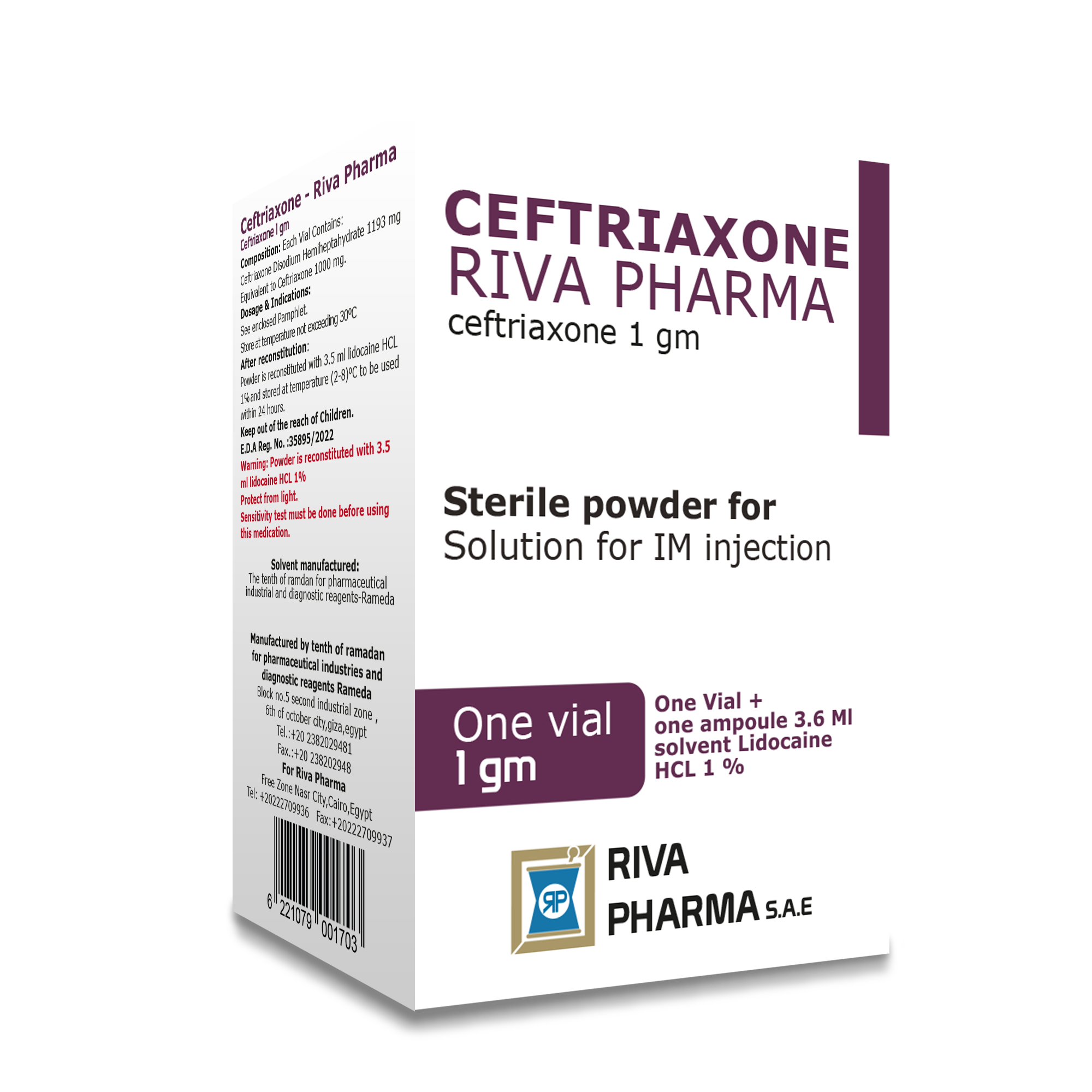 Ceftriaxone 1 gram - Riva Pharma IM Injection